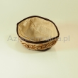 Krymka uszyta z ręcznie filcowanej wełny merynosów i wyhaftowana. W wewnętrznej jego części jest wszyta podszewka z bawełny.