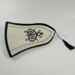 Kremowo-czarny kalpak tradycyjny ozdobiony kirgiskim wzorem narodowym.