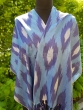 Uzbecki szal IKAT w stylu etno i boho z frędzlami w odzcieniach niebieskiego i granatu.