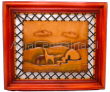 Obraz ze skóry "Dżajloo" letnie pastwisko, przedstawiające jurtę koczownika i koni. 100% handmade.