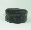 Skórzana męska czapka bez daszka - Krymka (fez, mycka, tubeteika, topu, takyja, tiubietejka, jarmułka) klasyczna czarna ze skóry naturalnej z vintage ozdobą. Rozmiar regulowany: 56-56cm.