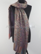 Dwustronny damski szal w jesiennych odcieniach brązu, pomarańczowego, burgund. 20 % jedwabiu i 80% modalu z frędzlami.