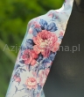 Przepiękny szal błękitny z kontrastującymi barwnymi wzorami w kwiaty znakomicie przyciąga uwagę. Latem może służyć jako zwiewna etola, chusta, jesienią jako szal, który przyjemnie otula szyję. Łatwo daje się układać, dlatego można go nosić na wiele sposobów. Produkt nie gryzący, miły w dotyku.