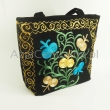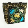 Oryginalna czarna torba ozdobiona haftem w stylu tradycyjnym. Ozdobę torby stanowią piękne barwne wzory Suzani z Azji Centralnej. Wzory przedstawiają roślinność z rajskiego ogrodu. Torba usztywniona flizeliną i posiada poszewkę w kolorze czarnym.