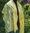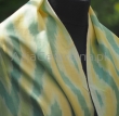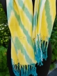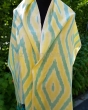 Żółto turkusowy uzbecki duży szal bawełniany IKAT w stylu etno i boho