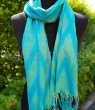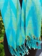 Turkusowy uzbecki duży szal IKAT w stylu etno i boho