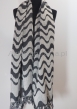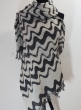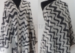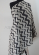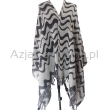 Damski męski duży dwustronny szal w subtelnych biało czarnych kolorach we faliste wzory ze 100% wełny z merynosów australijskich. Gatunek Premium.