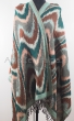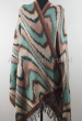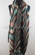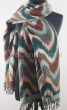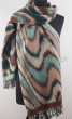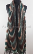 Damski dwustronny szal wielokolorowy w odcieniach zieleni we wzory Ikat z 100% wełny z merynosów australijskich. Gatunek Premium.