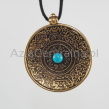 Piękny naszyjnik dwustronny metalowy Mandala o wymiarze 4,5 cm. Maksymalna długość sznurka: 39 cm.
