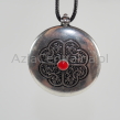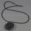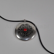 Piękny naszyjnik dwustronny metalowy Mandala o wymiarze 4,5 cm. Maksymalna długość sznurka: 32 cm.