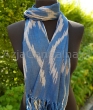 Niebiesko biały uzbecki szal IKAT w stylu etno i boho z frędzlami.